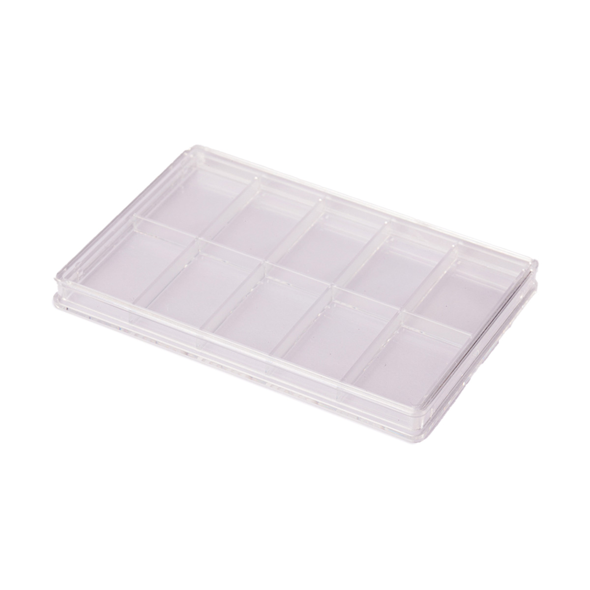 Boîte rectangulaire à dix compartiments de format 15 x 25 x 4 mm. Le couvercle recouvre complètement le fond de boîte permettant une meilleure visualisation des produits. Idéal pour ranger ou conditionner de petites pièces plates et fragiles.